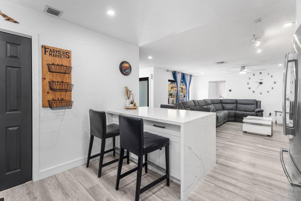 Step into this exceptionally bright, fully renovated 2-bedroom, 2-bath home designed with both style and functionality in mind. The stunning kitchen showcases a quartz waterfall countertop, stainless steel appliances, a closet pantry, and a spacious island perfect for entertaining or everyday living. The oversized primary suite offers incredible versatility, currently doubling as a home office. Featuring a walk-in closet along with a spa-inspired bath complete with dual sinks and a luxurious ste...Step into this exceptionally bright, fully renovated 2-bedroom, 2-bath home designed with both style and functionality in mind. The stunning kitchen showcases a quartz waterfall countertop, stainless steel appliances, a closet pantry, and a spacious island perfect for entertaining or everyday living. The oversized primary suite offers incredible versatility, currently doubling as a home office. Featuring a walk-in closet along with a spa-inspired bath complete with dual sinks and a luxurious step-in shower with waterfall showerhead. The guest bedroom includes a wardrobe-style armoire for exceptional storage, the guest bath is with a step-in shower, sliding glass doors, built-in bench, and a modern light-up mirror. Enjoy outdoor living in the spacious, fully fenced courtyard patio. This home is perfect for relaxing or entertaining plus the added convenience of an EV charger for modern living. Bright, modern, and truly move-in ready this home checks every box.